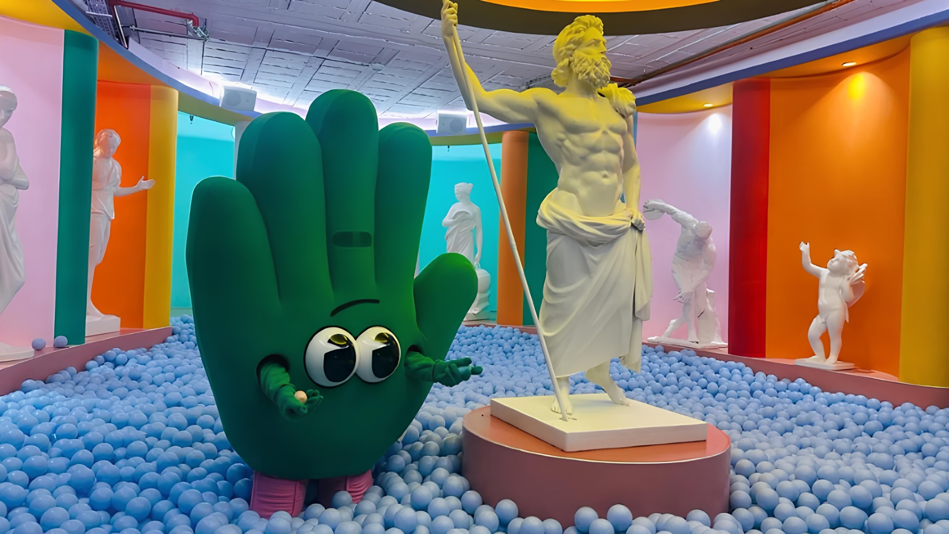Ao longo de 16 instalações interativas, os visitantes são desafiados a procurar ovos enquanto vivenciam estímulos visuais, sonoros, táteis, olfativos e gustativos — desde salas com balões em movimento a piscinas de bolas temáticas.