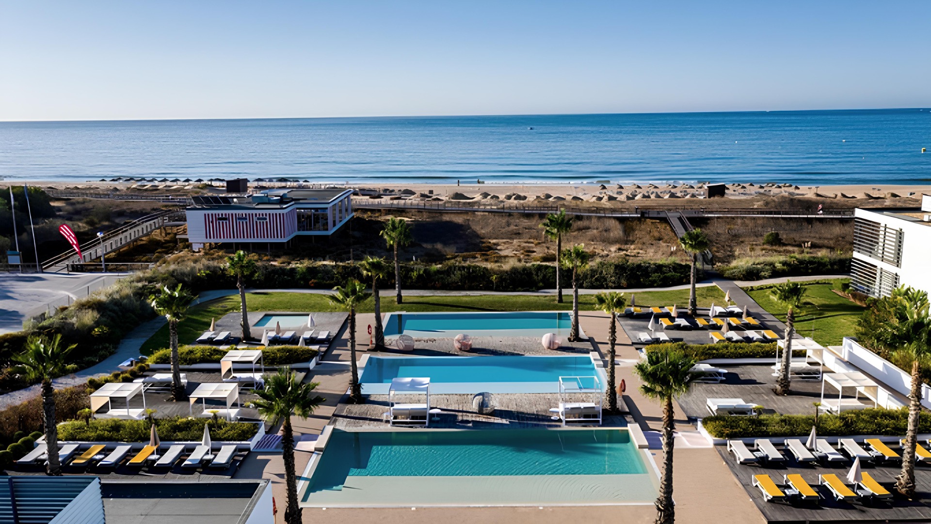 Com arquitetura minimalista e espaços luminosos, o hotel foi concebido para proporcionar uma experiência relaxante, ideal para quem procura sol, praia e conforto num ambiente moderno.