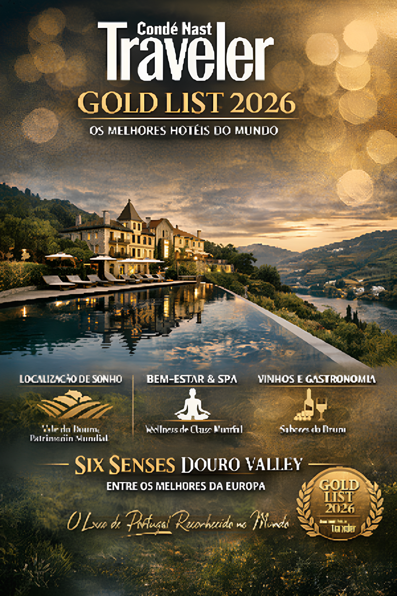 Distinguido pela Condé Nast Traveler na prestigiada Gold List — uma das listas mais respeitadas do mundo no mundo do turismo e da hotelaria de luxo — o Six Senses Douro Valley afirma-se como um símbolo da excelência da hotelaria portuguesa, elevando o Douro e Portugal ao mais alto patamar do turismo internacional.
