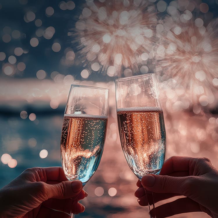 A nossa celebração de passagem de ano inclui duas noites de alojamento e é feita de boa comida, boa música e uma das melhores vistas da costa. Conte com um cocktail de boas-vindas, um jantar de gala e um almoço de Ano Novo para entrar em 2026.