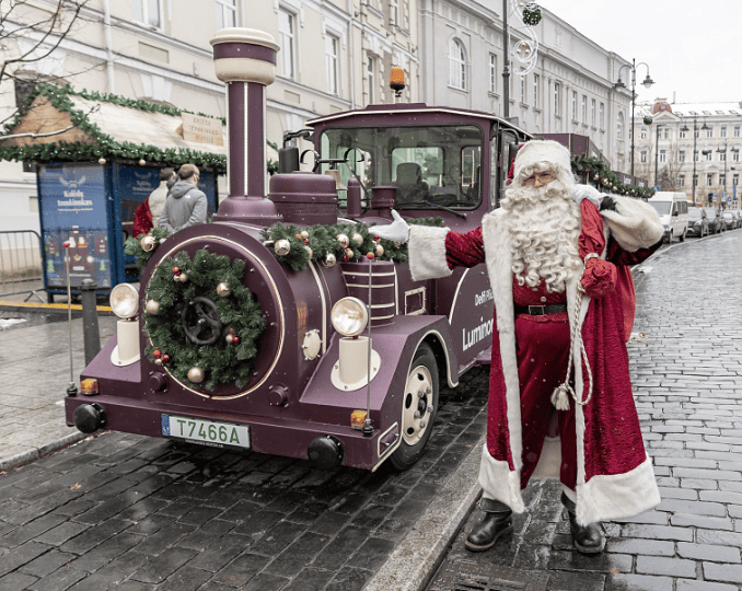 Rota: passa por ruas históricas como Pilies St, Didžioji St, Šv. Jono St, Universiteto St e volta a Šventaragio. Kalėdos Sostinėje.
