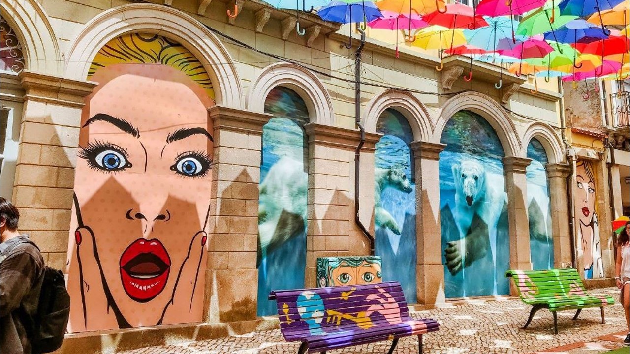 Águeda é conhecida pelas suas ruas cheias de guarda-chuvas coloridos suspensos no ar, criando uma atmosfera alegre e mágica. Murais, instalações artísticas e detalhes pintados pela cidade reforçam o espírito criativo, tornando-a um dos destinos mais vibrantes e fotogénicos de Portugal.