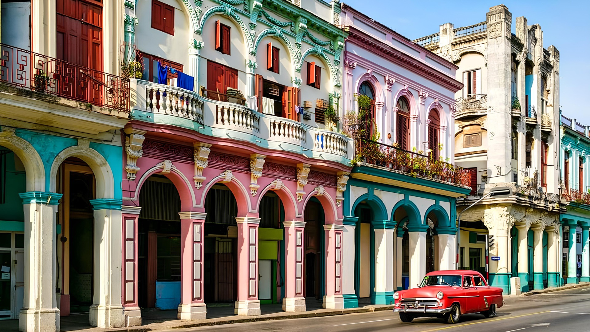 Em Havana, o tempo parece andar mais devagar, entre fachadas coloridas e carros clássicos que percorrem as ruas. Os tons pastel dos edifícios coloniais contrastam com a energia da vida quotidiana, criando uma atmosfera única. Cada esquina revela uma história, onde a cor e a cultura se entrelaçam num cenário cheio de alma.