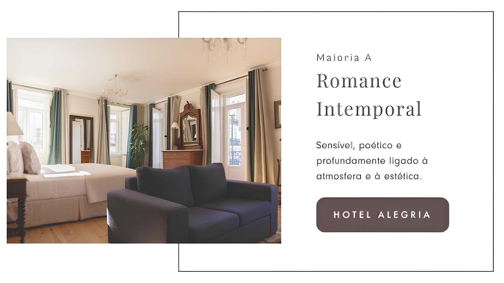 Procura o hotel ideal para uma escapadinha romântica, mas não sabe por onde começar? Com apenas 5 perguntas, este quizz ajuda-o(a) a descobrir qual o estilo de hotel que melhor se adapta às suas preferências — desde refúgios tranquilos no meio da natureza, ao charme de uma cidade vibrante ou a experiências urbanas cheias de vida. Responda ao quizz e encontre a sugestão perfeita para a sua próxima viagem a dois.