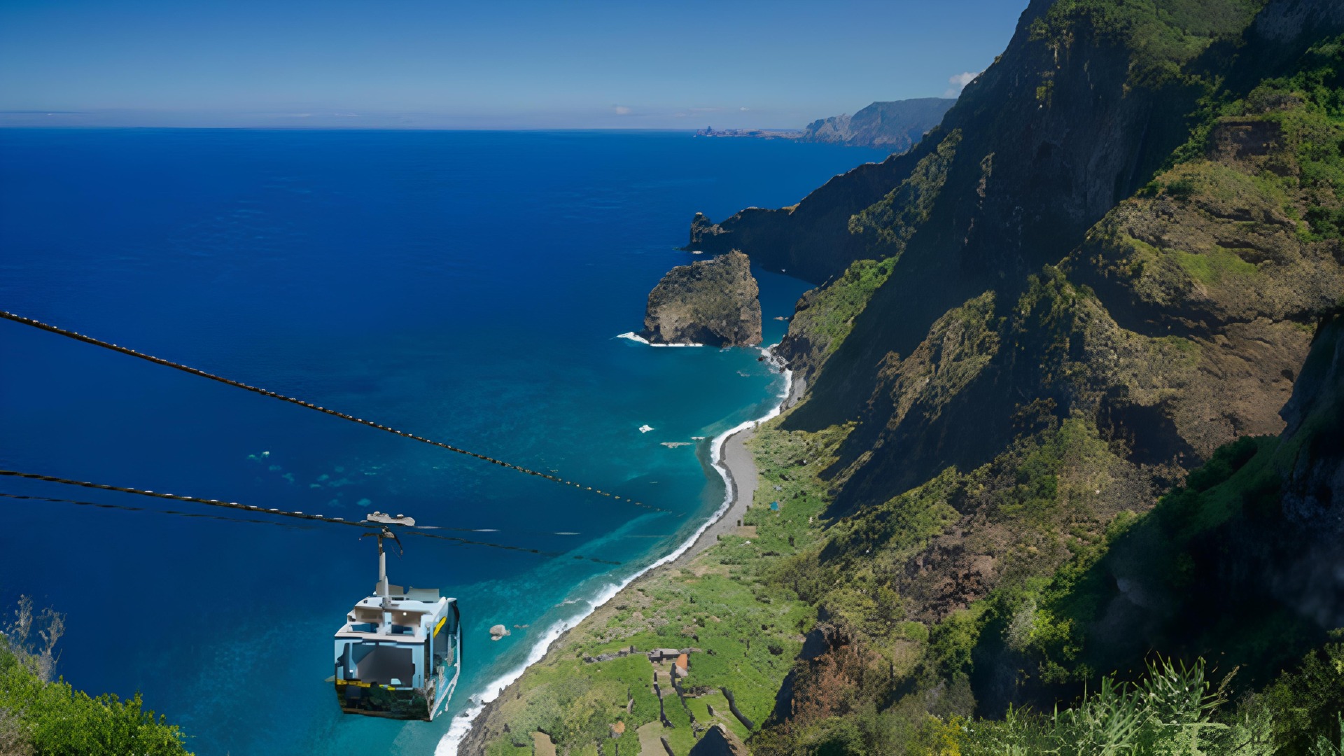 Outro exemplo impressionante da Madeira, este teleférico desce pela encosta até ao mar, atravessando florestas e penhascos íngremes. O acesso é limitado, o que torna a experiência ainda mais exclusiva.