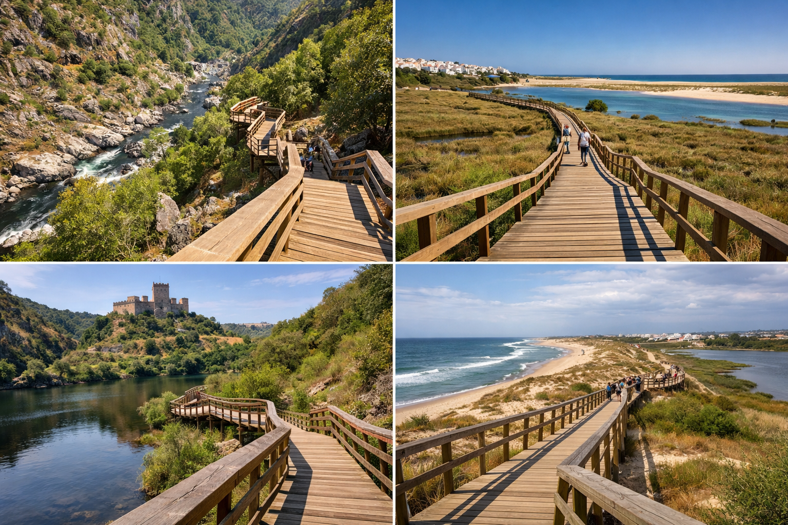 Passadiços de Esposende: Percursos junto ao estuário do rio Cávado e litoral, combinando natureza, aves e paisagem marítima.