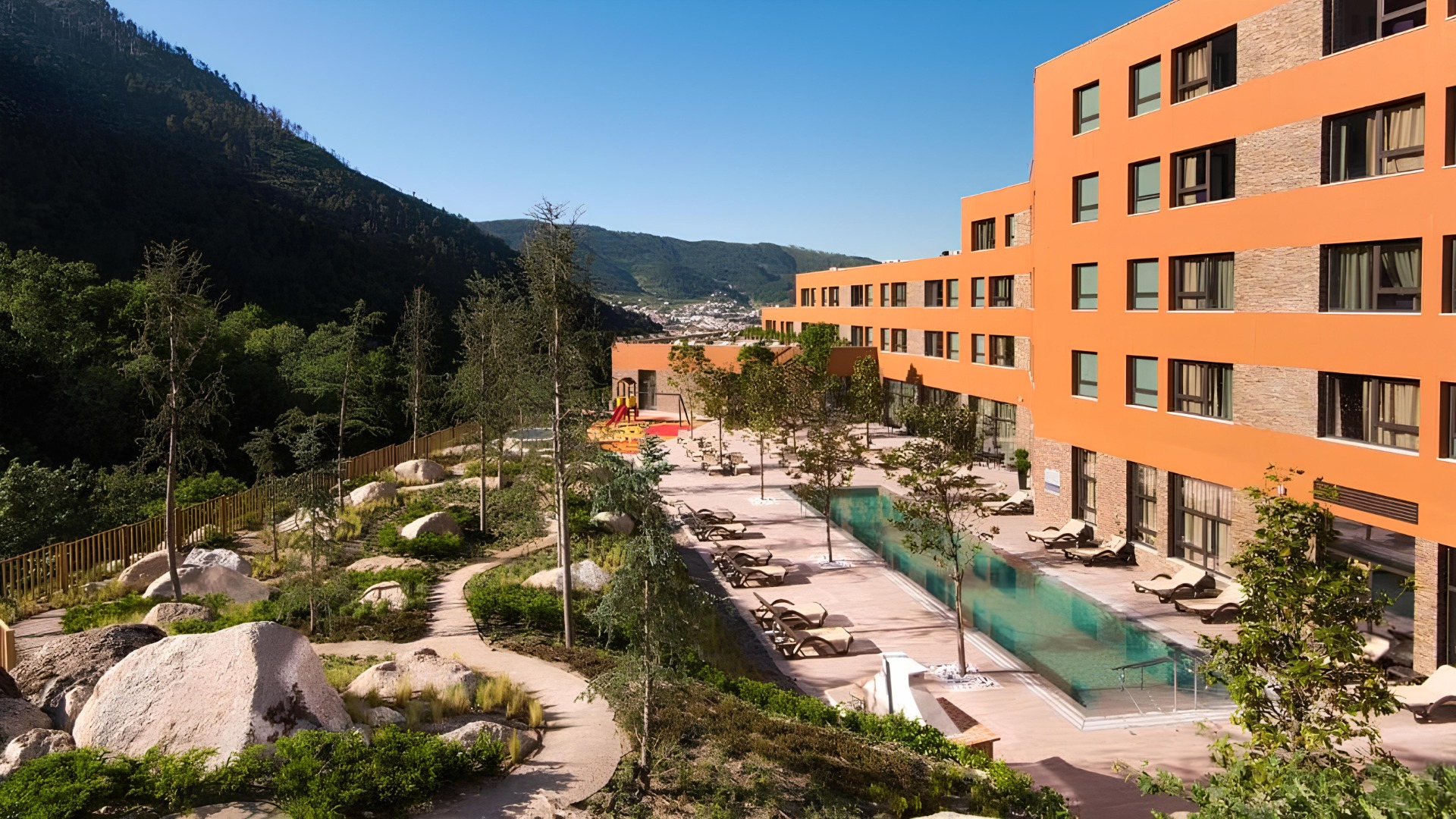 Hotel de montanha com quartos modernos e confortáveis, spa com piscina interior aquecida, sauna e banho turco, piscina exterior, ginásio, restaurante, bar e áreas comuns acolhedoras. Ideal para estadias de relaxamento, com foco em conforto, bem-estar. Possibilidade ainda de praticar atividades ao ar livre, explorar trechos de trekking e hiking.