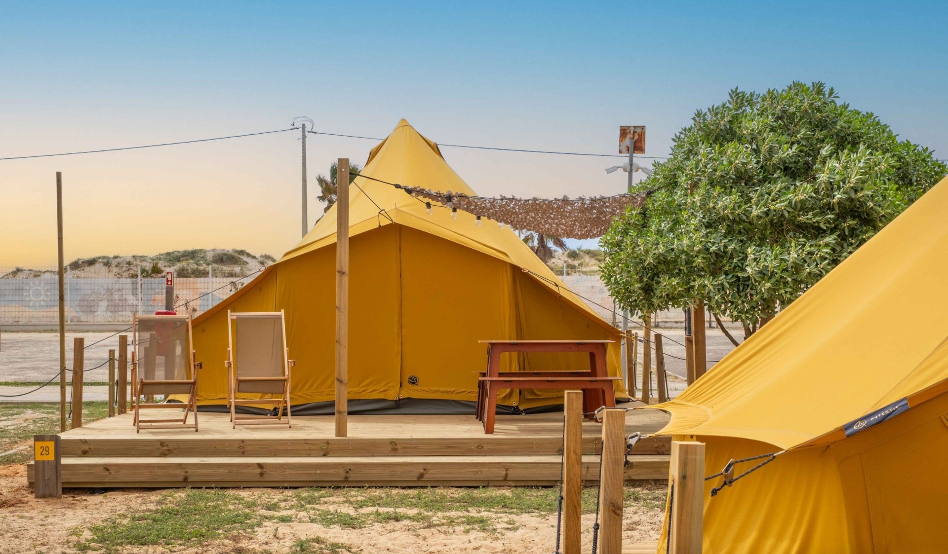 Alojamento de estilo glamping situado na Praia de Faro, no Parque Natural da Ria Formosa — uma área protegida de lagunas, ilhas barreira e biodiversidade única. É um projeto de turismo sustentável que combina o contacto direto com a natureza com o conforto de um alojamento mais sofisticado que um camping tradicional.